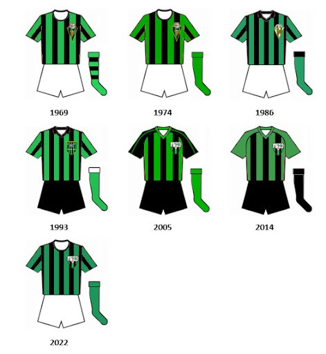 Los colores verdinegros fueron elegidos porque no eran habituales en el fútbol español, para así no tener que comprar dos equipaciones, y el escudo distintivo originario era un triángulo con dichos colores y un casco de caballero en su parte superior.